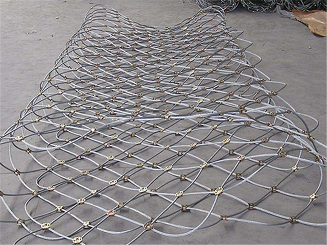 鋼絲繩網(wǎng)的用途:采用鋼絲繩錨桿或鋼筋錨桿和支撐繩固定方法將金屬柔性網(wǎng)覆蓋在具有潛在地質(zhì)災(zāi)害的坡面上,從而實現(xiàn)坡面加固或限制落石運(yùn)動范圍的一種防護(hù)網(wǎng)。